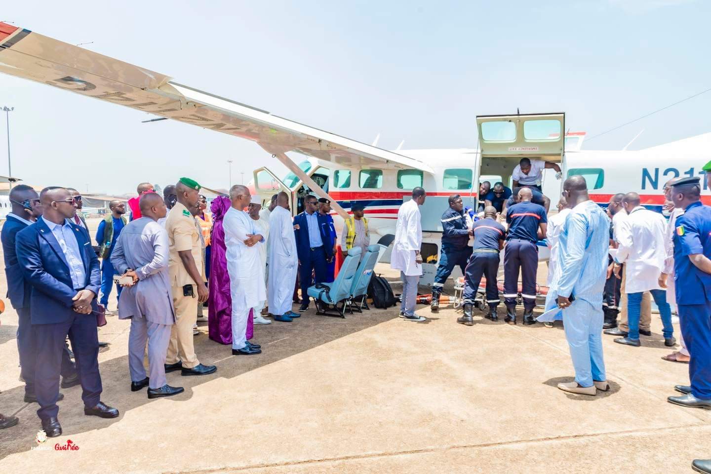 Conakry, le 26 avril 2024 – Le Premier ministre, accompagné des ministres de l’Administration du Territoire, de la Santé et de l’Action Sociale, s’est rendu à l’aéroport Ahmed Sekou Touré et a accueilli les victimes de l’accident survenu sur la nationale Macenta-Guéckédou. Au total, 8 blessés graves et leurs parents étaient répartis dans 3 avions, en plus des 5 premiers blessés accueillis d’hier.