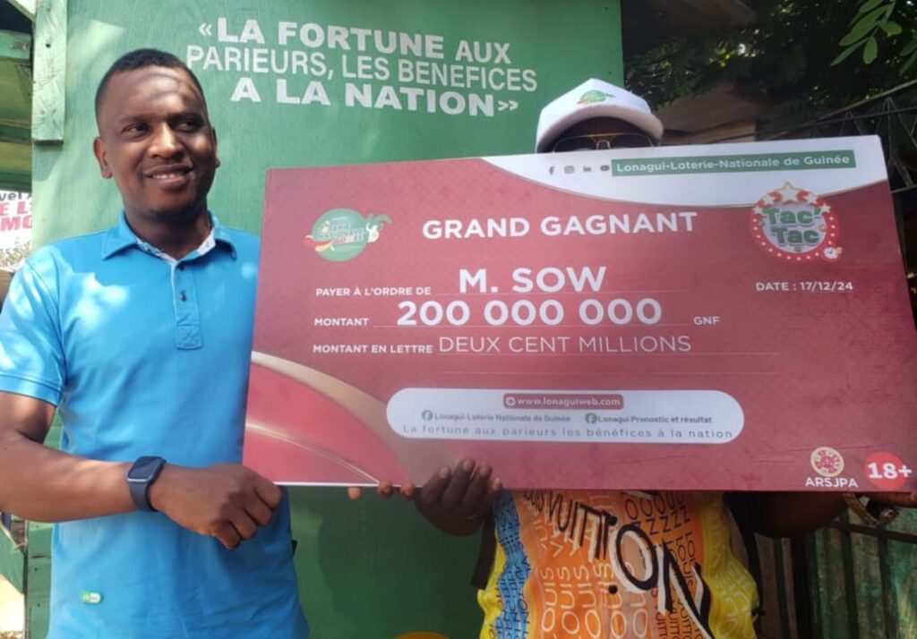 La Loterie Nationale de Guinée (LONAGUI) multiplie les millionnaires dans le pays . Un heureux parieur a remporté 200 millions GNF, à travers le tout nouveau jeu à la LONAGUI, appelé, TAC TAC.