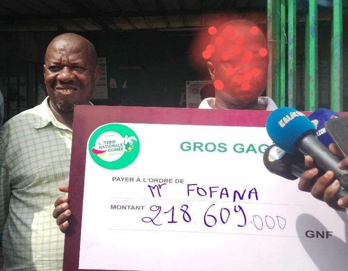 Le chef de l’agence de PMU M. Issiaga Camara, en présence du responsable de la promotion et de la publicité de la Lonagui, M. Elhadj Sala Sidibé, a remis le chèque de 218 609 000 GNF à Facinet Fofana, l’heureux gagnant qui, visiblement, était content d’avoir remporté cette somme. Cela fait 10 ans que je joue, et c’est hier que Dieu m’a récompensé.